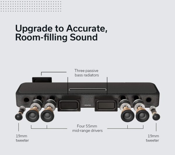 Denon Home Sound Bar 550 – Compact 3D Surround Sound, Dolby Atmos & DTS:X, Built-in HEOS, & Amazon Alexa Home Subwoofer with HEOS Built-in, Deep, Powerful Bass, & 8″ Bass-Reflex Woofer