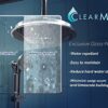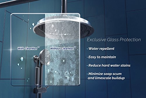 - Premium 3/8 in. (10mm) thick certified clear tempered glass; DreamLine exclusive ClearMax water and stain resistant glass coating