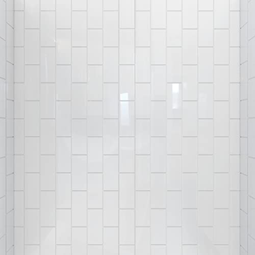 - Shower base installation is direct to stud; White, trim-to-size shower walls are glue-up