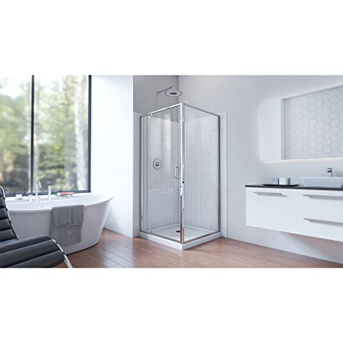 - Accommodates up to 4 in. for width adjustment and 1/2 in. for out-of-plumb walls; 1/4 in. certified clear tempered glass and chrome finish