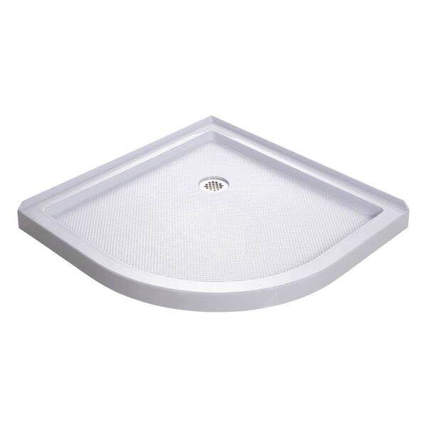 - Glossy white finish is scratch and stain resistant; Center drain opening fits any standard 2 in. compression fitted drain (not included)