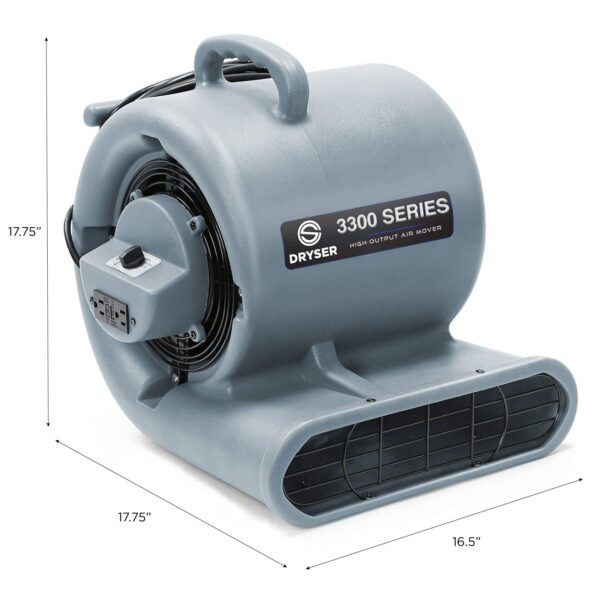 • This professional-grade, industrial-strength air mover fan will meet all your air circulation needs. Featuring a precision-engineered impeller for maximum efficiency, with a best-in-class CFM (Cubic Feet per Minute) output from its powerful 1/3 horsepower motor.