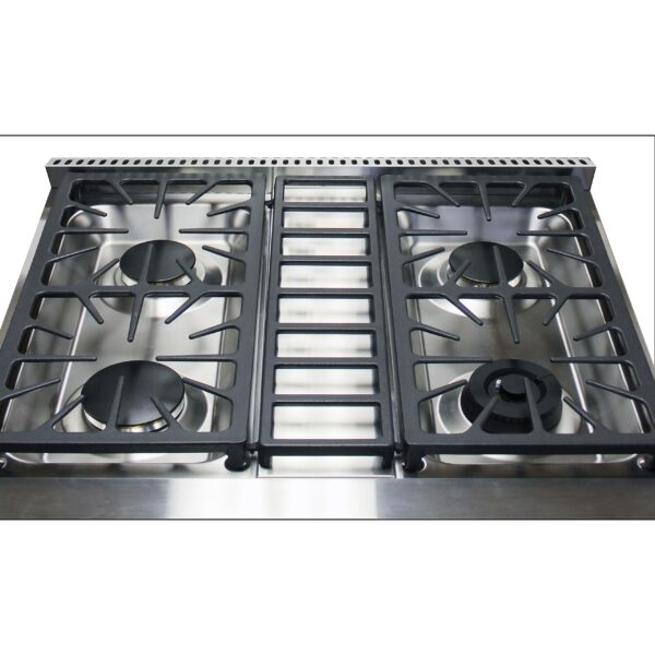 • 4 SEALED BURNERS: High performance gas burners which allow you to cook from a high heat for boiling, frying or searing to a low simmer for the most delicate sauces; 1 dual burner x 15,000 BTU with simmer function 650 BTU (Front), 1 single burner x 18,000 BTU (Front), 2 single burner x 12,000 BTU (Back)