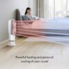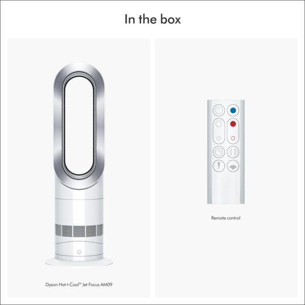 Details: Dyson Hot+Cool™ Jet Focus fan heater amplifies airflow to heat you or cool you fast.¹ Air Mulitplier™ technology amplifies the surrounding air, providing an uninterrupted stream of smooth airflow. Effective heating and personal cooling all year round.