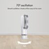 - Smooth oscillation directs airflow around the room. Oscillates at a 70 ° angle.