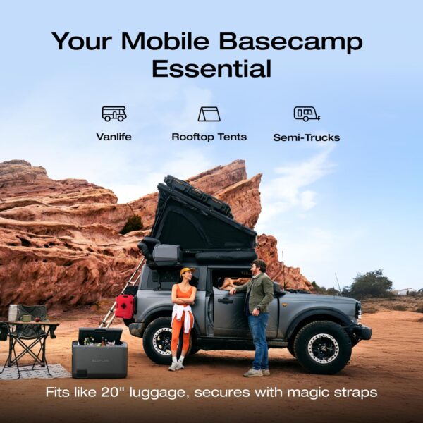 • All-Terrain Compatibility: Compact 20″ luggage size with ergonomic handle fits effortlessly in SUVs/overlanders/semitrucks. Magic strap kit secures on rooftops/truck beds. Cools 120-180 sq ft spaces, creating microclimate for desert adventures or alpine camping.