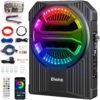 - 【100+ Dynamic RGB Lighting & App/Remote Control】 Our powered subwoofer car audio system features premium IC chip-controlled LEDs with 16 million color options, surpassing basic subwoofer lighting. Choose from 100+ Dynamic RGB effects like forward/reverse color chasing, flowing water patterns, or music-synced beats. Customize brightness, colors, and modes effortlessly via the “Magic Lantern” app (downloadable on Google Play/Apple Store) or the included remote.