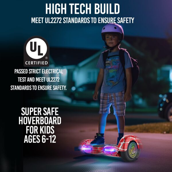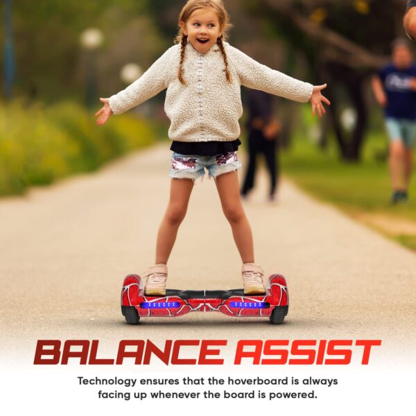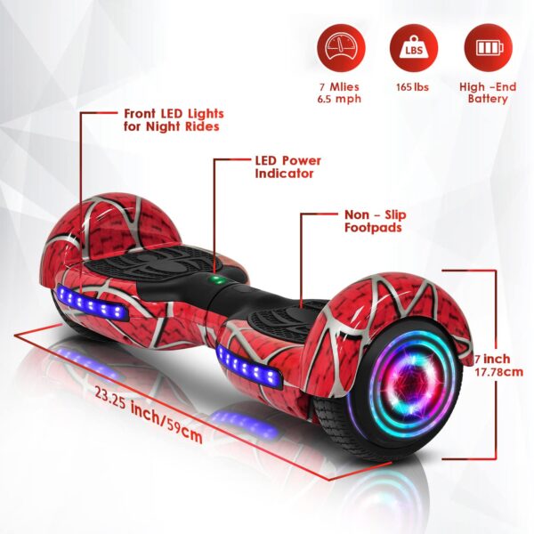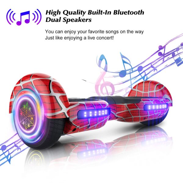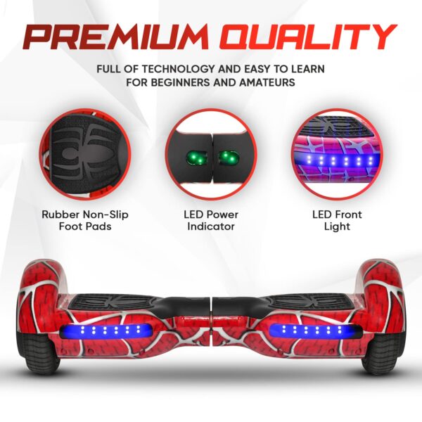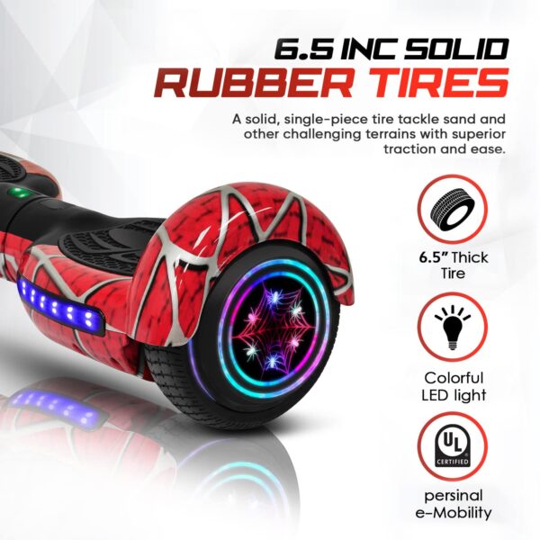 EMAXUSA, Spider-Pattern Hoverboard for Kids Ages 6-12, with Bluetooth Speaker and LED Lights 6.5″ Hover Board, UL2272 Safety Certified (Red)
