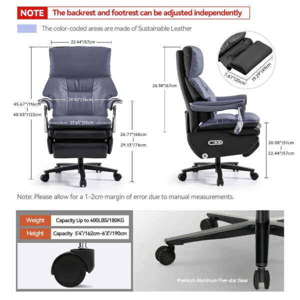 - Customizable Comfort Independently Adjustable Backrest and Footrest: The executive office chair tailor your sitting posture by adjusting the backrest to the perfect angle for work, reading, or relaxation. Extend the footrest to provide extra leg support or retract it when not needed. Perfect for reducing leg strain and enhancing comfort during long hours at your desk