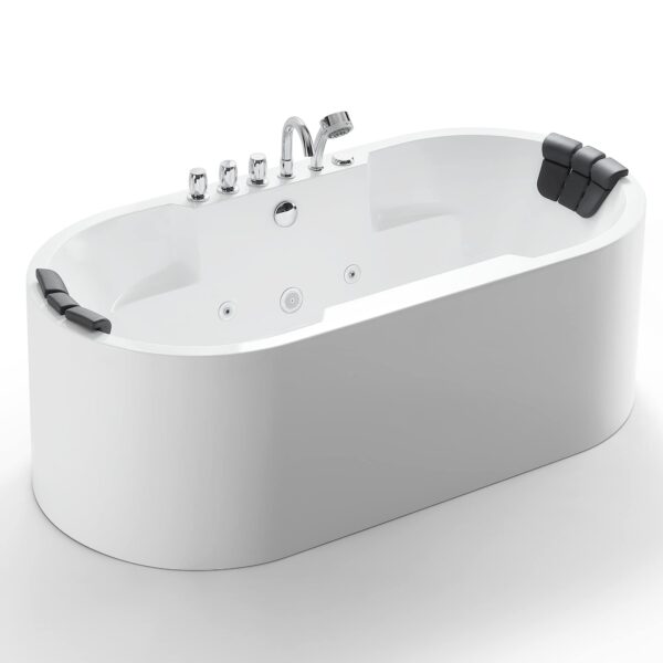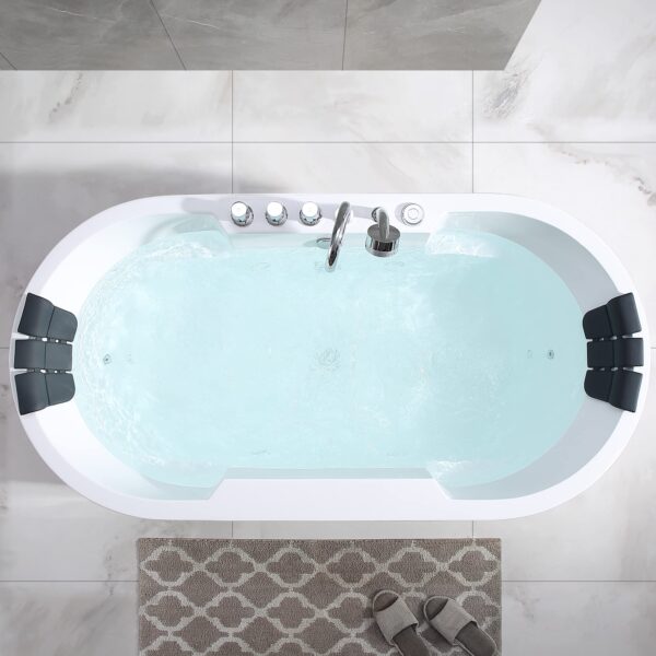 Be the first to review “Empava 67 in. Acrylic Freestanding Tub Hydromassage Gracefully Oval Shaped Whirlpool 8 Water Jets Soaking SPA, Double-Ended Massage Bathtub with Two Pillows”