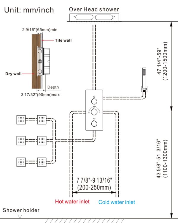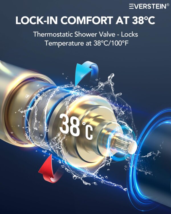 - Anti-Scald Thermostatic Valve: Featuring a brass valve cartridge, this mixer valve prevents you and your family from being scalded by sudden temperature changes. It maintains a preset shower temperature even when hot or cold water pressure drops unexpectedly. The temperature can be locked at 38 degrees (100℉), making it safe and friendly for children and the elderly.