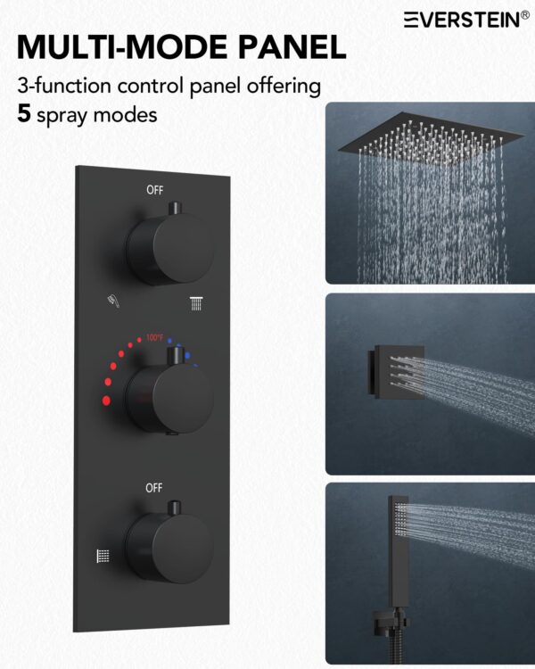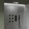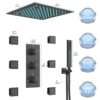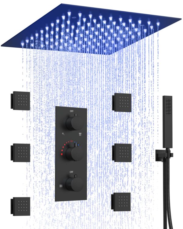EVERSTEIN 12 Inch 64-Color LED Mood Lighting Shower Set, Ceiling Mount Rainfall Shower System with 6 Body Jets (Matte Black)