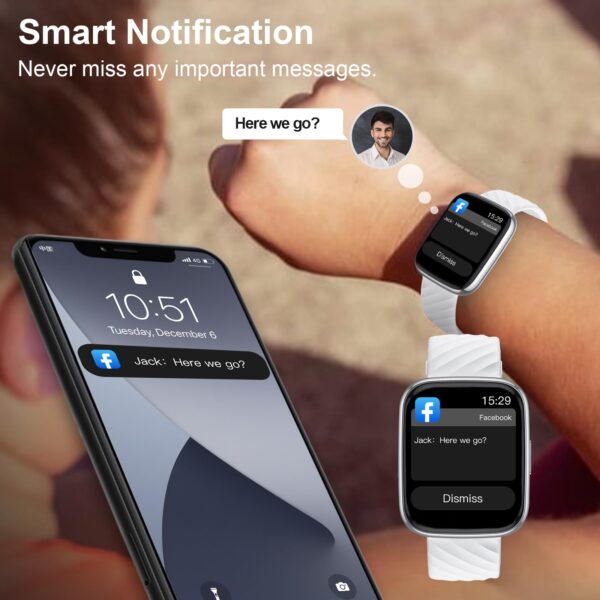 - Messages Notification: The smart watch can synchronise contact information on your phone, keep in touch with family or friends anytime. Fitness watch also supports messages notification (WhatsApp, Facebook, Instagram, Twitter, Skype, Line, etc). All notifications are displayed on your wrist and reminded by vibration.