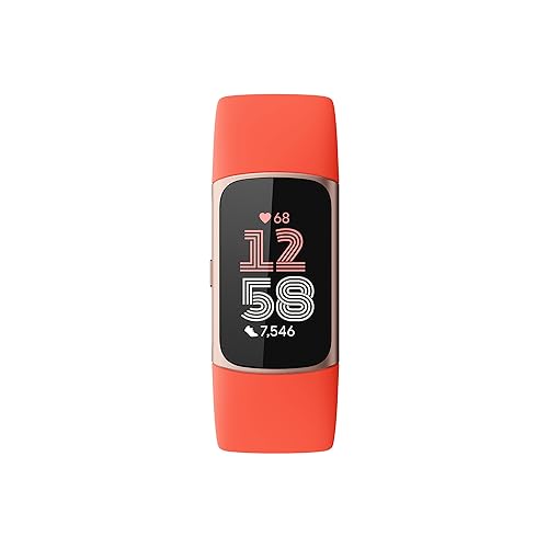 Fitbit Charge 6 Fitness Tracker with Google apps, Heart Rate on Exercise Equipment, 6-Months Premium Membership Included, GPS, Health Tools and More, Gold/Coral, One Size (S & L Bands Included)