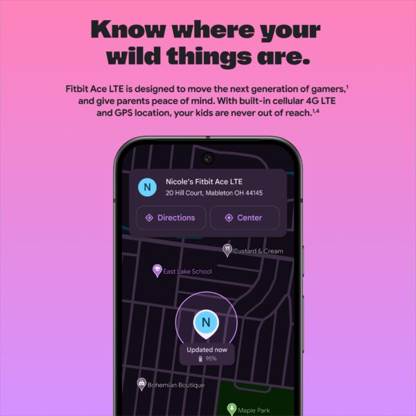- KNOW WHERE YOUR WILD THINGS ARE – The Fitbit Ace LTE is the first-of-its-kind kids smartwatch and fitness tracker designed to move the next generation of gamers; with built-in cellular 4G LTE and GPS location, they’re never out of reach[1,4]