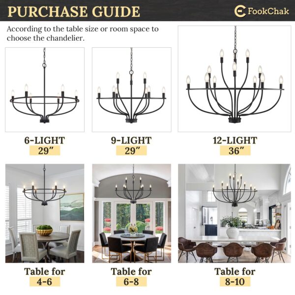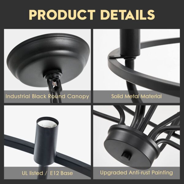• ▶Compatible Info – This classic black light fixture for dining room is compatible with 9 X E12 bulb (BULB NOT INCLUDED)