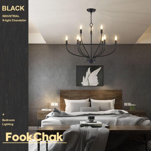 • ▶ 9-Light Black Bouquet Chandelier – FookChak 9-light black candle light fixture, just like an elegant black bouquet chandelier lighting up in the air,with 9 X E12 socket, provides bright lighting and brings elegant vibe for your home. FookChak modern chandelier, a great lighting choice for bedroom, bathroom, living room, dining table, kitchen island, foyer, entryway, stairs, restaurant, hotel.