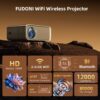 FUDONI Projector with WiFi and Bluetooth 4K Supported, Upgraded Outdoor Movie Projectors Native 1080P FHD 12000L, Video Proyector for Home Theater, Compatible w/HDMI/USB/iOS/Android/Windows/TV Stick