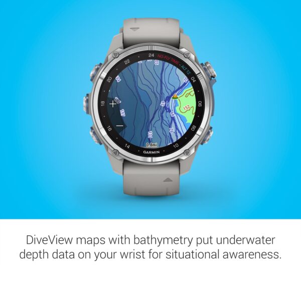 Details: Discover a deeper connection with the Descent™ Mk3 watch-style dive computer. Sized for smaller wrists, it features a bright 1.2” AMOLED display with scratch-resistant sapphire lens, 200-meter dive-rated case, metal leakproof inductive buttons and multiple dive modes for recreational to technical scuba diving and freediving. DiveView™ maps offer bathymetric depth contours and more than 4,000 dive sites to help you find where to dive and get oriented. Plus, a dive readiness tool, developed by Garmin, shows how lifestyle factors such as sleep, exercise, stress and jet lag can affect your body’s overall preparedness for diving — so, ultimately, you can make better-informed dive plan decisions (data presented is intended to be a close estimation of metrics tracked). This dive computer is designed to help maximize your preparation for the physical and mental challenges of diving. You can also reference ABC sensors with a 3-axis underwater compass as well as surface GPS capabilities to mark your entry and exit points. When you’re ashore, built-in sports apps help you stay on top of your fitness, while Garmin Pay™ contactless payments, music storage and smart notifications keep you connected (compatible smartphone required).