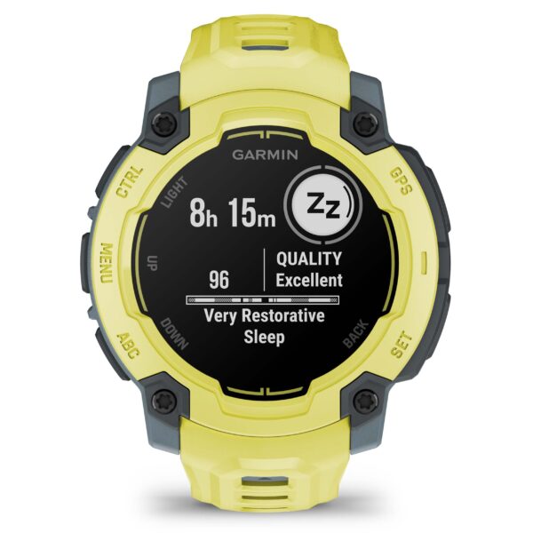 - Stay in Tune with Your Body: Track your heart rate, sleep, stress, and energy levels around the clock with this powerhouse Garmin Instinct E sports GPS watch. Access notifications, apps, and widgets via the Connect IQ Store—all from your wrist.