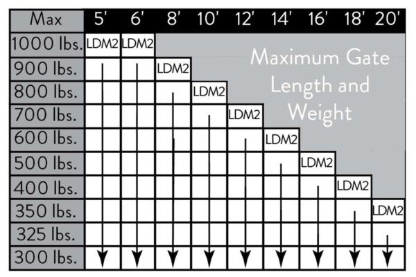 - Dual Gate Opener Kit: Designed for dual swing gates up to 1,000 pounds or up to 20′ in length. This automatic gate opener is perfect for residential driveway gates including decorative, chain link, tube, plantation and wood (not recommended for solid panel gates). Solar Compatible