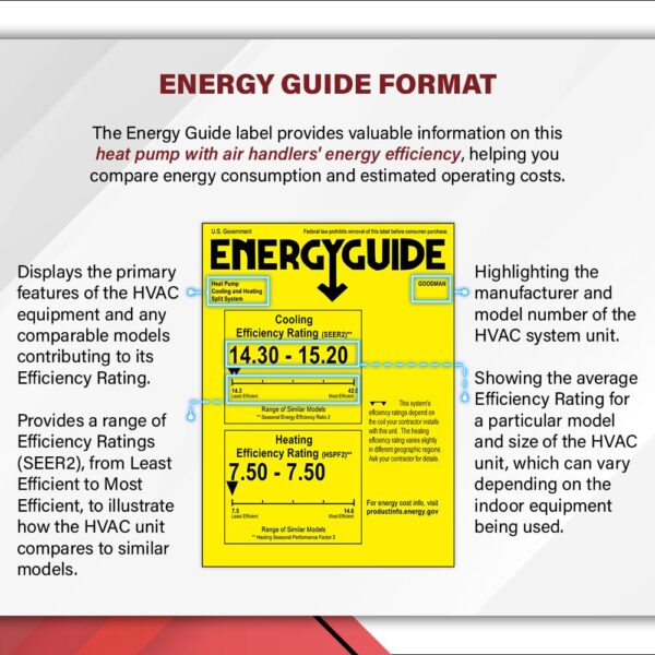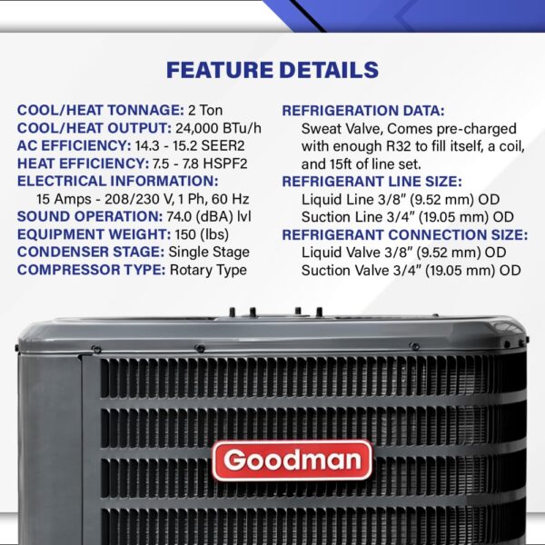 Goodman 15.2 SEER2 Central Split Unit Heat Pump AC/Heating System with 50′ Install and 10K Backup Heat Kit | 2-Ton 24000 BTU, TXV Device, Single Stage HVAC System | R32 Refrigerant