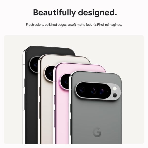 - Pixel 9 Pro’s elevated new design has a satin matte back, beautiful dual-finish camera bar, and polished metal frame that feels as good as it looks; and with the new design, everyday spills and drops are no big deal[6]