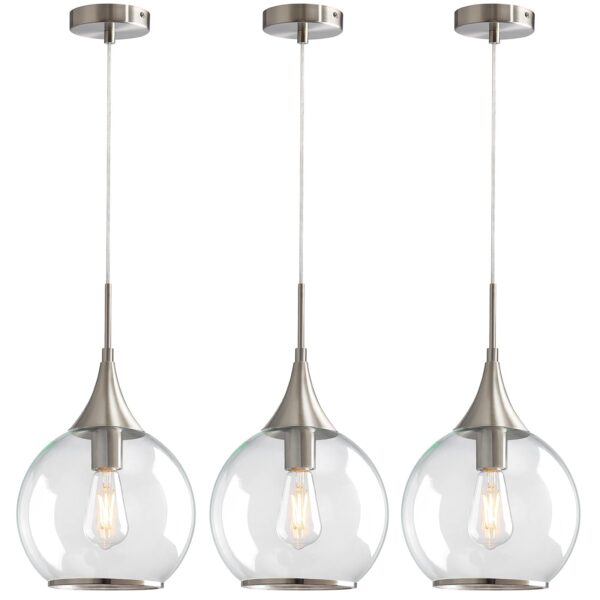 HAHZT Pendant Lights Kitchen Island: 3 Pack Brushed Nickel Light Fixture Modern with Clear Glass – 10 Inch Mid Century Globe Kitchen Lighting Fixtures Ceiling for Bar