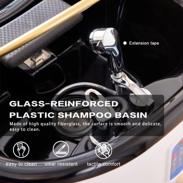 - Durable Fiberglass Basin: The fiberglass shampoo basin of this shampoo bed ensures long-lasting performance and resistance to wear and tear; In addition, the acrylic shampoo basin is lightweight yet strong, making it easy to install and maintain