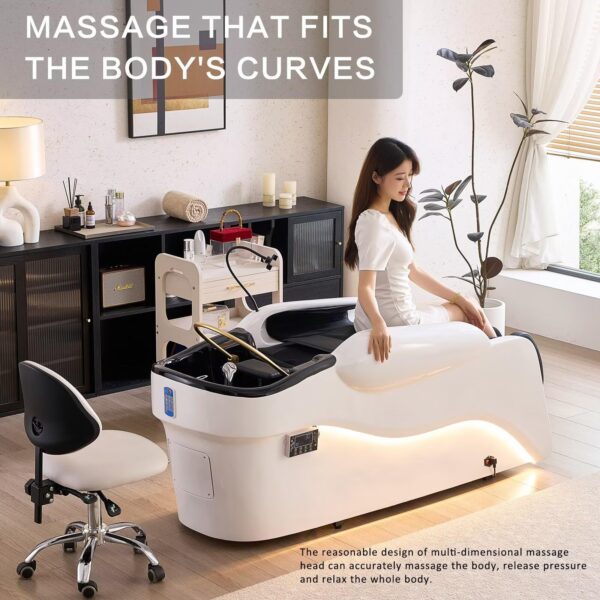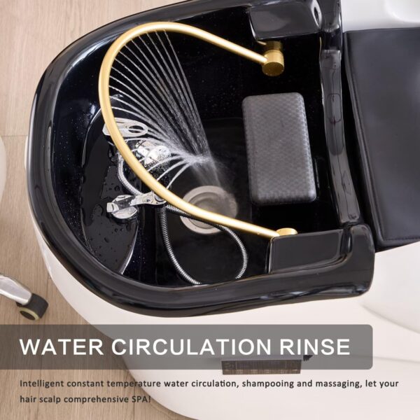 - Water Circulation Flushing: There is a U-shaped water circulation waterfall spa, which can better massage the head and hair, continuously purify the scalp, constant temperature water output, one-button start spa, and can adjust the time and temperature
