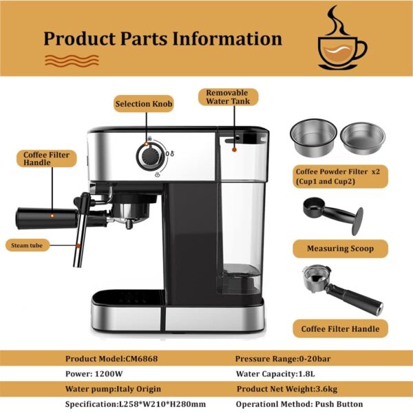 - stainless steel for improved coffee quality.