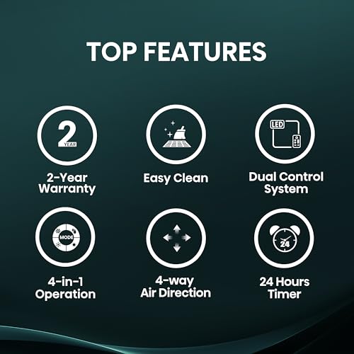 - Intuitive Dual Control System – Adjust the temperature, fan speed, and modes with ease using the user-friendly control panel or the convenient remote control, giving you total comfort at your fingertips.