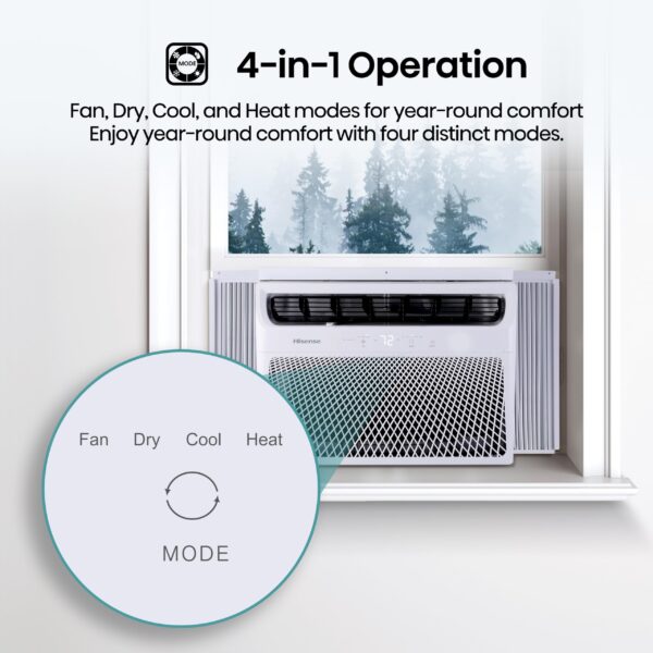 Details: The Hisense 8000 BTU Window Air Conditioner with Heater is a versatile solution for year-round comfort, delivering efficient cooling in the summer and supplemental heating in the colder months. Ideal for rooms up to 350 sq. ft., it offers customizable settings, multiple fan speeds, and quiet operation. With a compact design, easy-to-clean filter, and simple installation, this unit is built for convenience, comfort, and dependable performance in any season.