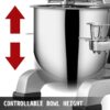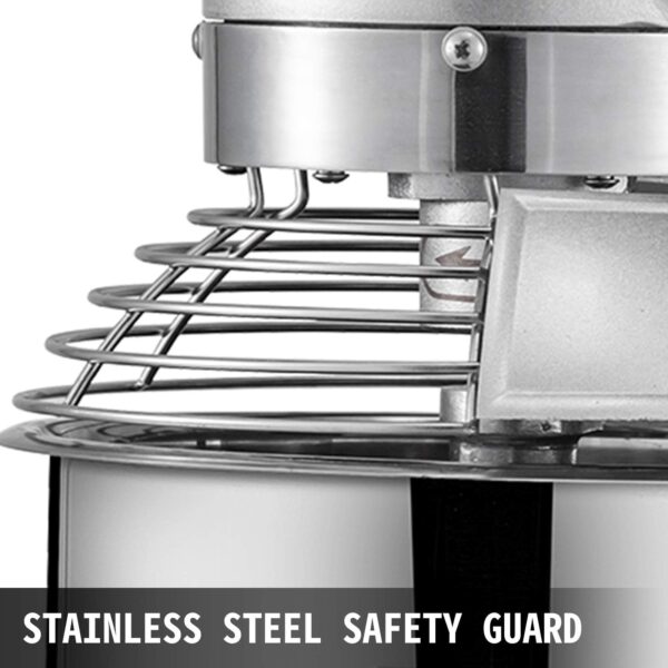- PROTECTIVE DESIGN- A stainless steel wire bowl guard is designed to prevent large items from falling into the bowl during operation; The height of the bowl can be easily adjusted by a turning wheel; The START and STOP buttons operate independently, ensuring safety.