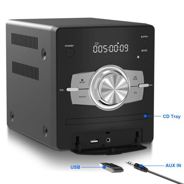 Home Stereo System with CD Player, FM Radio, Bluetooth, AUX in, USB in, Earphone Jack, Remote Control Included, 30W HiFi Shelf Stereo System