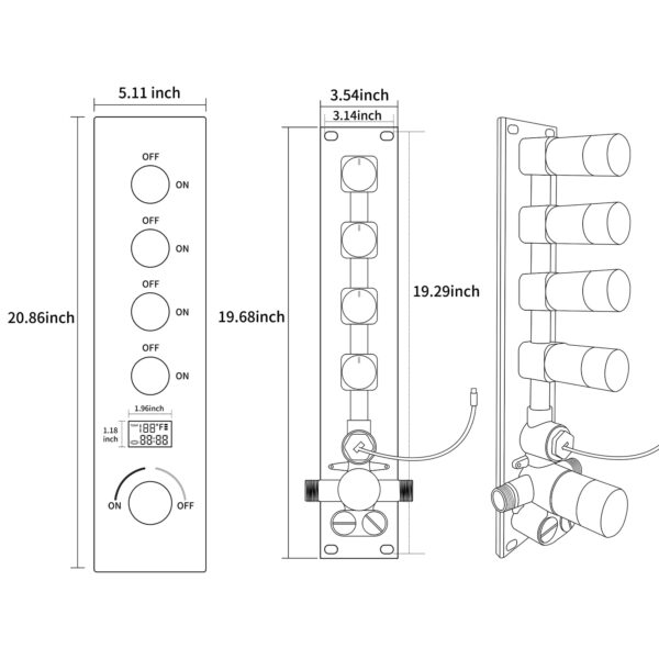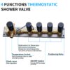 - 4 FUNCTION SHOWER MODE: Temperature shower system includes waterfall shower, rain shower, handheld shower and 6 body spray jets. Corresponding buttons control the corresponding spout functions, and you can choose to use each function individually or use all shower functions at the same time.