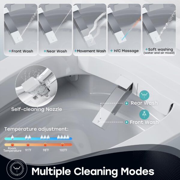 - Smart Toilet with Built-in Bidet: With multiple cleaning modes and customizable settings, smart toilet turns every visit into a spa-like retreat. The self-cleaning nozzle takes hygiene to the next level, providing deep cleaning after every use—like having a personal caretaker dedicated to your comfort and well-being.