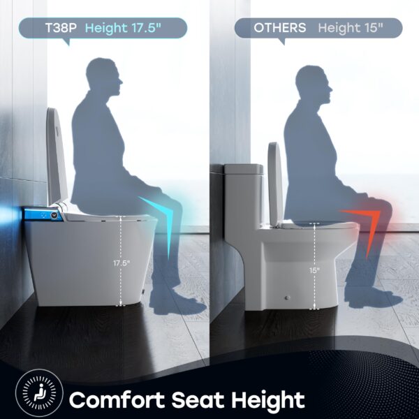 - ADA height Bidet Toilet Combo: smart toilet is like a helping hand for those with achy knees or trouble getting up and down. Paired with an elongated heated seat offering 4 adjustable levels, it’s thoughtfully designed to pamper you with ease and comfort every step of the way.