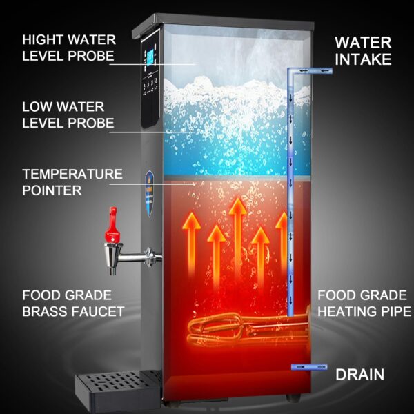 - SAFETY FIRST: Prioritize safety with a 304 stainless steel airtight inner box to prevent accidents. Enjoy automatic keep-warm functionality after boiling, ensuring hot water is always available. For busy commercial environments, trust our boil-dry protection feature for worry-free operation. Our Commercial Water Boiler is a secure and reliable solution for your hot water needs