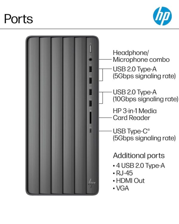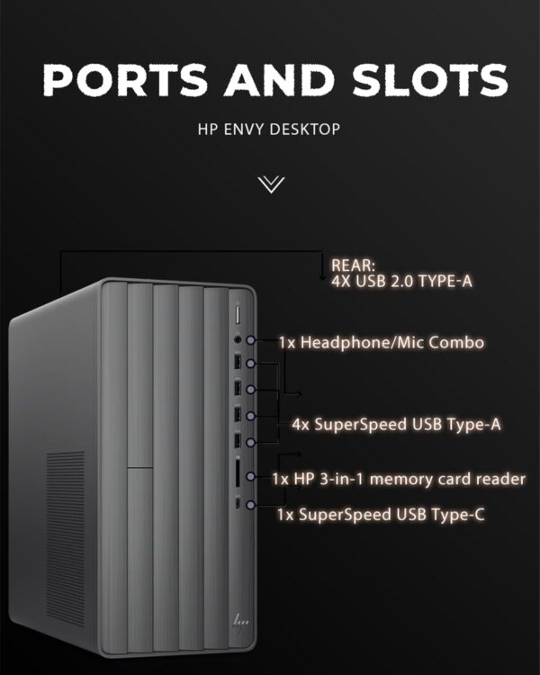 - ➤ 【Expanded Ports for Versatile Connections】The hp envy desktop tower is equipped with 9 USB ports, including both USB-A and USB-C, supporting ultra-fast data transfers up to 10Gbps — perfect for external drives, accessories, and device charging.