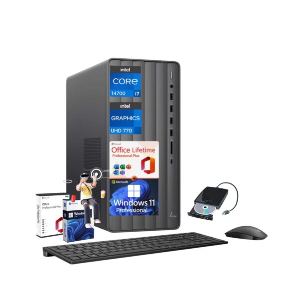 HP Envy Desktop Computer PC – Intel i7-14700(Up to 5.4GHz), Windows 11 Pro, Microsoft Office Lifetime, Wi-Fi 6, Intel UHD Graphics, TE01-5002 (32GB RAM | 1TB SSD)