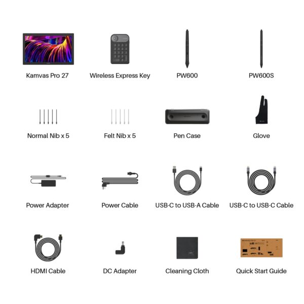 - 【Compatibility】Kamvas Pro 27 supports a variety of mainstream software on the market. It is compatible with Windows 10 or later, Mac OS 10.12 or later, Android devices that support USB3.1 GEN1 and DP1.2 and Linux OS(Ubuntu 20.04 LTS)