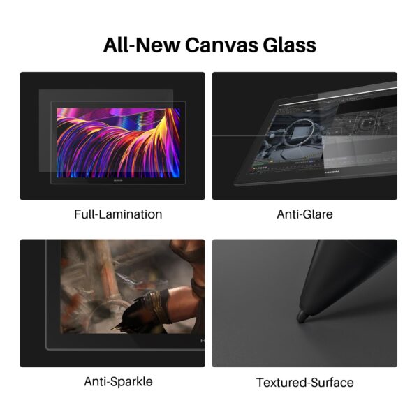 - 【All-new Canvas Glass】Combining a finer surface glass etching with full lamination feature, Kamvas Pro 27 delivers superior anti-glare properties and a pen-on-paper feel. Furthermore, the anti-sparkle display complemented by DC dimming, ensuring your eyes free from strain even after long hours of use