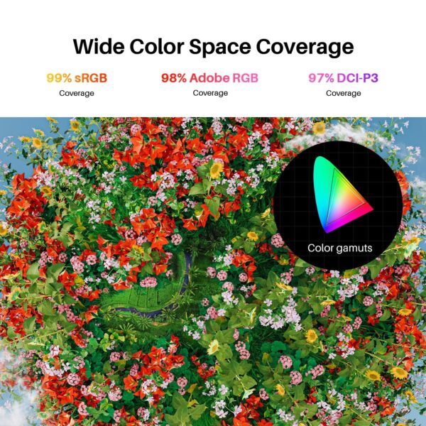 - 【Accurate Color Display】3D Lut Hardware Calibration ensures minimal color deviation, boasting color accuracy with ΔE<1.5 and a standard 2.2 Gamma value. The factory calibration report is included in the package, free from concerns about color accuracy risk