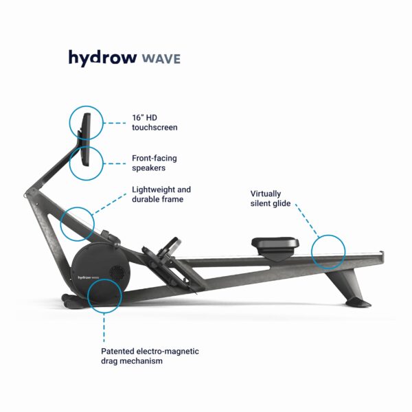 - ESCAPE INTO IMMERSIVE WORKOUTS. Featuring a crystal-clear 16” HD rotating touchscreen display with front-facing speakers, rowing on the Wave is sure to take you places. Even better – the rower itself is designed to make indoor rowing feel like on-the-water rowing, thanks to our proprietary electromagnetic drag technology. Features include padded seat, adjustable foot straps, and a low-stress grip handle.