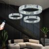 IDEQUY 3 Rings Crystal Chandelier Hanging Pendant Lighting LED Dimmable 3000K-6000K D16+D24+D32