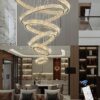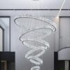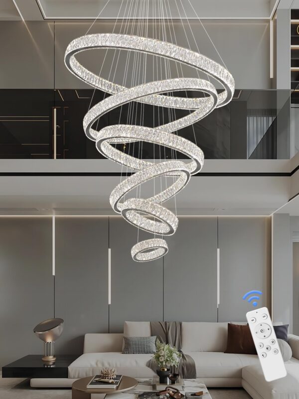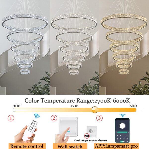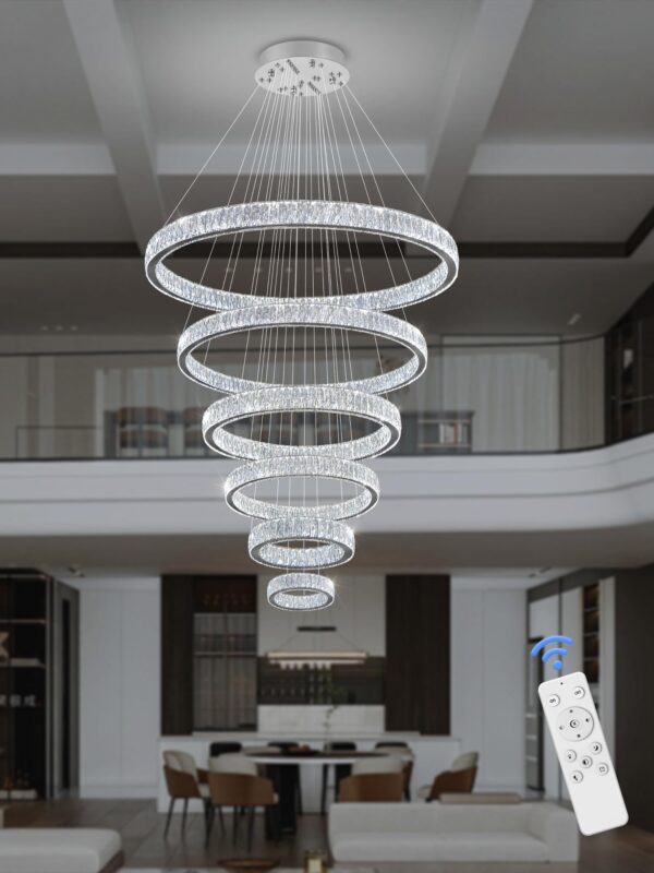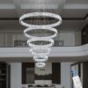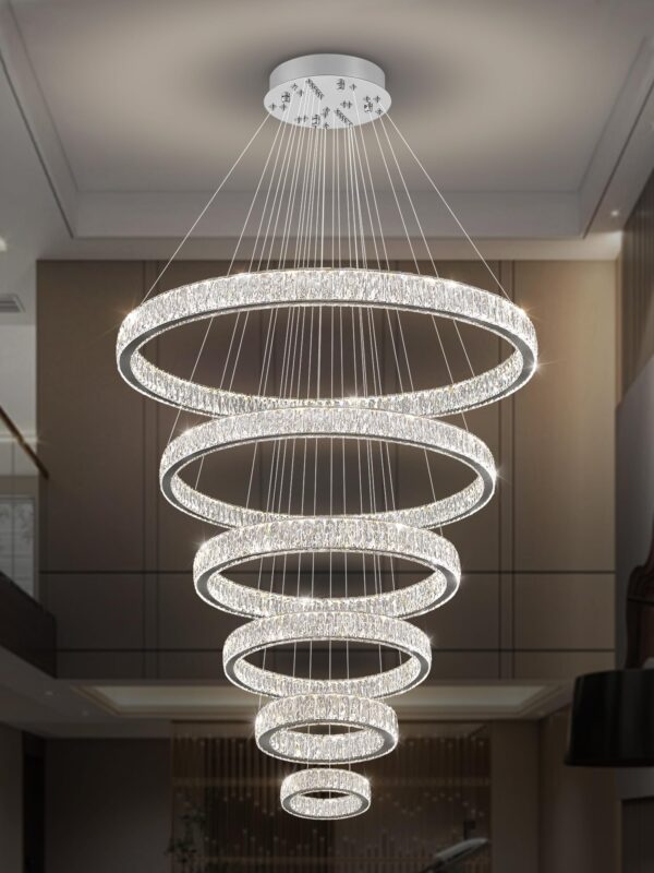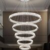 IDEQUY Contemporary Extra Large Crystal Chandelier Modern 6 Ring LED Ceiling Pendant Light Adjustable Stainless Steel Chandeliers D8+15.7″+23.6″+31.5″+39.4″+47.5″