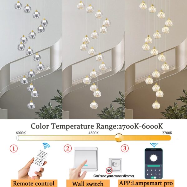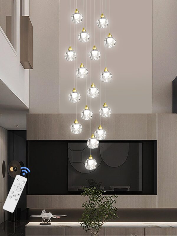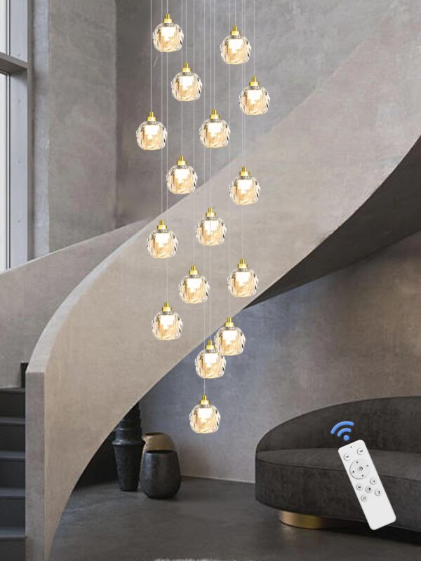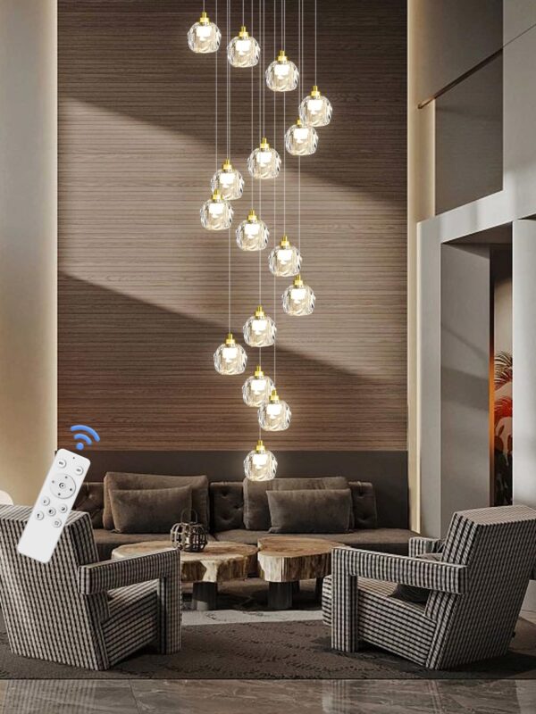 - ✨【High Ceiling Chandelier Modern Spiral Chandelier Design】The modern and minimalist led crystal drop chandelier design is being timeless. Polished chrome stainless steel ceiling canopy, 16 elegant clear crystal ball spiraling downward,stainless steel design makes this crystal chandelier richer in refraction surface, K9 crystal ball polyhedron cut, as dazzling as diamond, thicken K9 crystal clear shades emit aesthetic and ample glow to create a beautiful lighting atmosphere outside your home or inside your room. you will love the glow of this lamp.