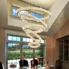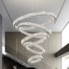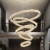 IDEQUY Modern High Ceiling Chandeliers for Foyer,Luxury Dimmable Crystal Ceiling Light Fixtures Staircase Entrance Villa Large 5 Ring Chandelier D8”+15.7″+23.6″+31.5″+39.4″