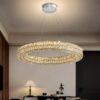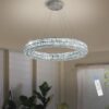 IDEQUY Modern Luxury Crystal Chandelier for Dining Room 32″ LED Ring Pendant Light Adjustable Dimmable 2700k-6000k
